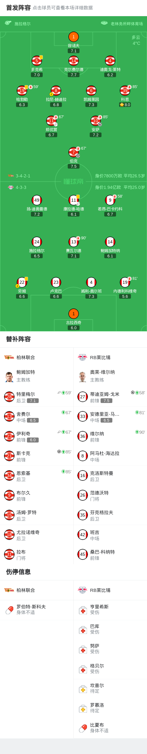 柏林联合3-1RB莱比锡,斯卡克、安萨破门