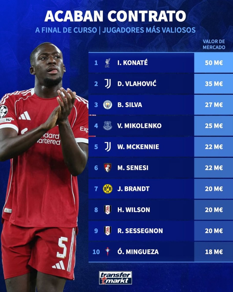 北京时间2月20日,德转列出了现有合同今年6月到期德转身价最高的10名球员,利物浦中卫科纳特以5000万欧元排名第一,尤文图斯前锋弗拉霍维奇3500万欧元第二,曼城队长伯纳多-席尔瓦2700万欧元第三。德转列现有合同今夏到期球员身价TOP10:1.科纳特(利物浦)5000万欧元2.弗拉霍维奇(尤文图斯)3500万欧元3.伯纳多-席尔瓦(曼城)2700万欧元4.米科连科(埃弗顿)2500万欧元5.麦2026-02-20 01:38:09