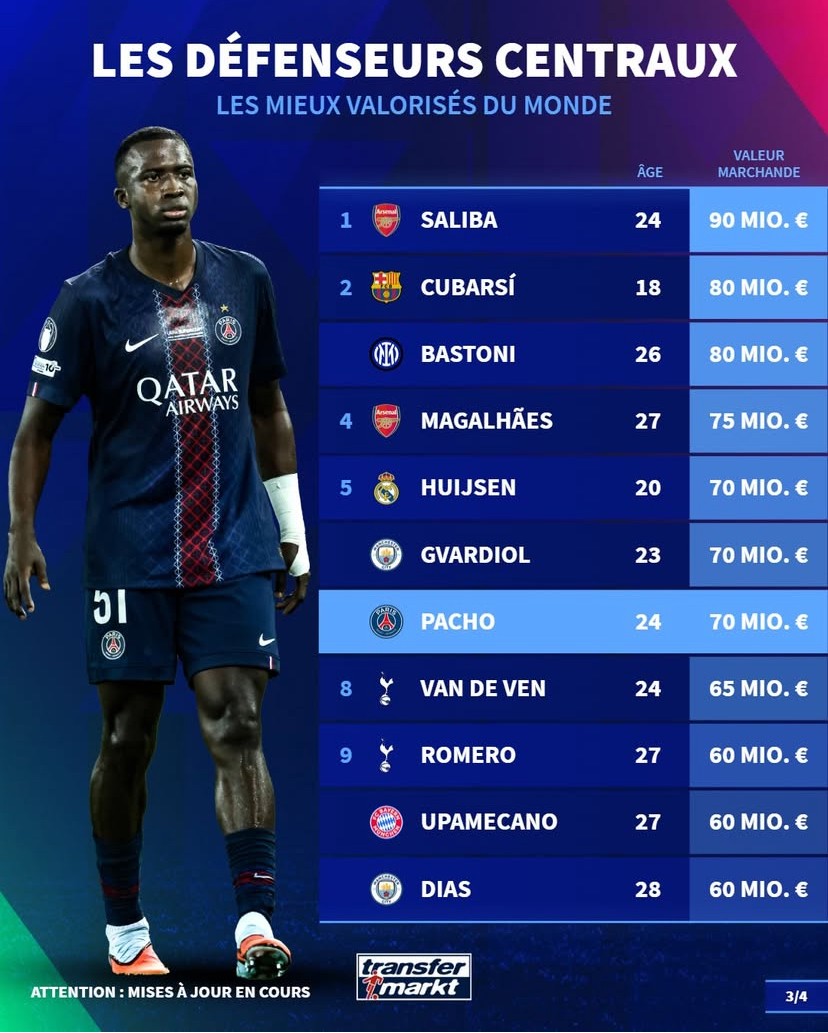 北京时间12月15日,随着法甲球员身价榜单的更新,转会市场权威机构德转揭晓了全球足坛中后卫身价TOP10的最新排名。在这份榜单中,身价飙升至7000万欧元的威廉-帕乔与多名球星并列第五,而萨利巴以9000万欧元的身价傲视群雄,库巴西与巴斯托尼则以8000万欧元并列次席。德转全球足坛中后卫身价TOP10榜单:1.萨利巴(阿森纳)年仅24岁身价高达9000万欧元2.库巴西(巴塞罗那)年仅18岁身价已达2025-12-16 00:01:46